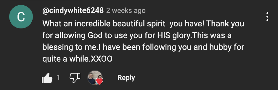Thank you for allowing God to use you for HIS glory. This was a blessing to me.